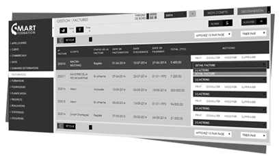 Gestion Commerciale Export : Clients, Produits, Offres, Commandes, Risque Client et Garanties, CREDOC sur ventes, Ordres d'Exécutions, Expéditions, Factures, Comptes Clients, Suivi des événements, Tableau de Bord de suivi.